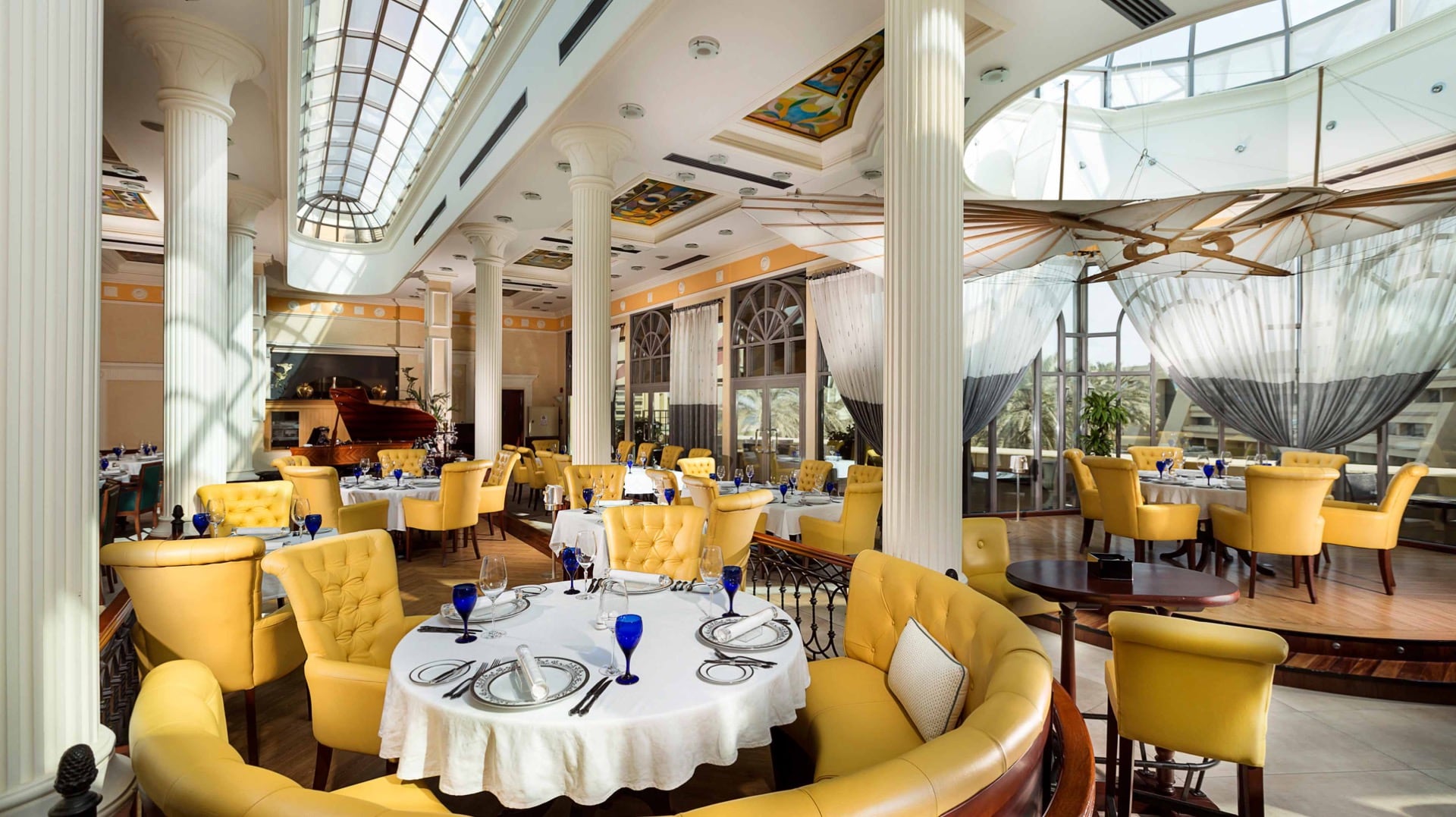 Overlooking the lush, green club garden and named after one of the most important forts on the eastern coast of the UAE, Al Bathna serves over 15 main courses crafted by master chefs as well as impressive desserts. This buffet-style international restaurant is a winner for many patrons who enjoy the seafood night every Sunday and the Friday family brunch, which keeps the kids entertained. Al Bathna's menu promises to take you on a culinary adventure of seafood and barbecued delights.