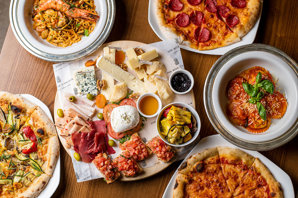 Resembling a classic Italian villa, Giornotte is an all-day dining restaurant with an outdoor brick patio and a wooden deck overlooking the gardens of the Ritz-Carlton Abu Dhabi, Grand Canal.