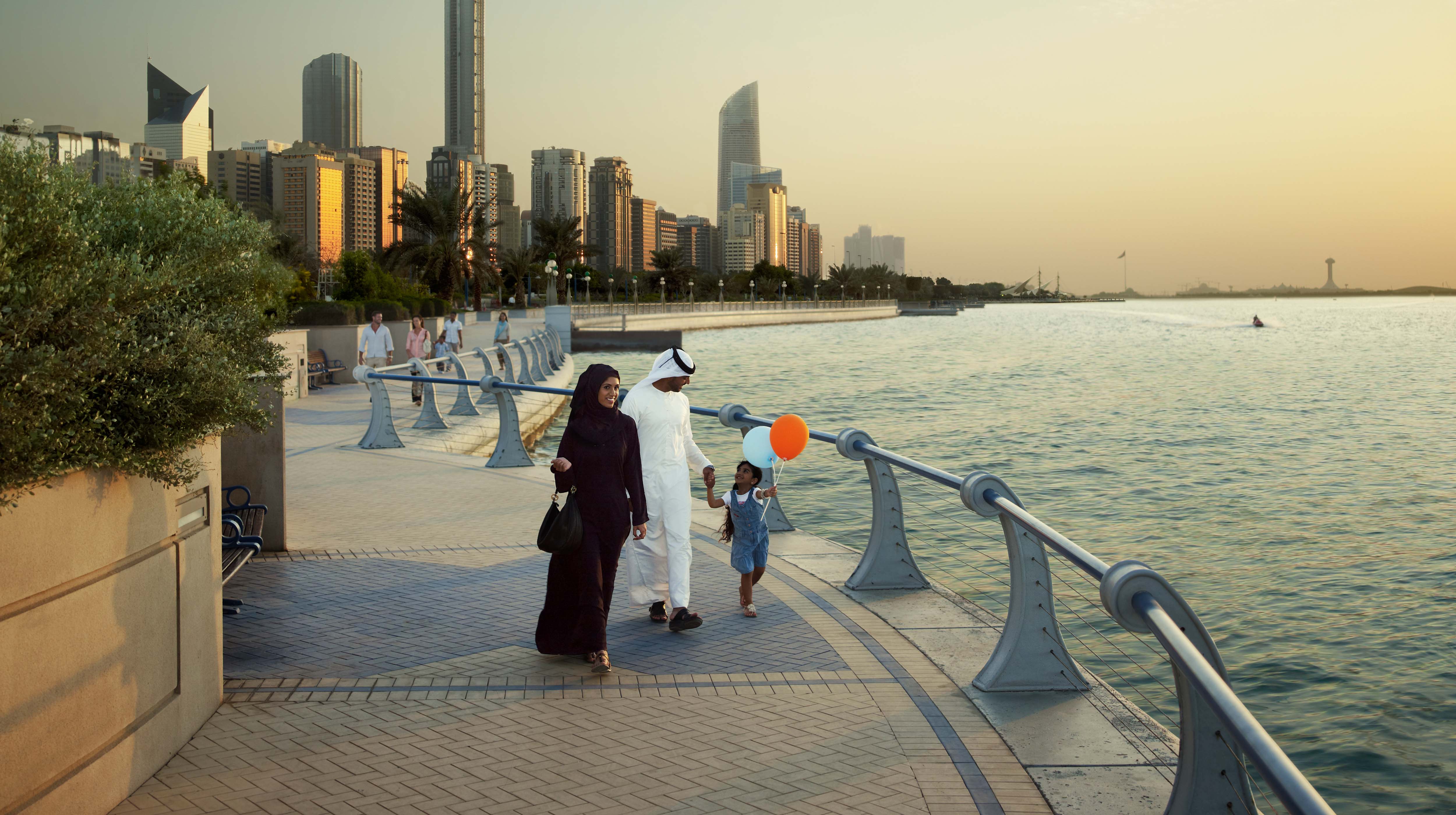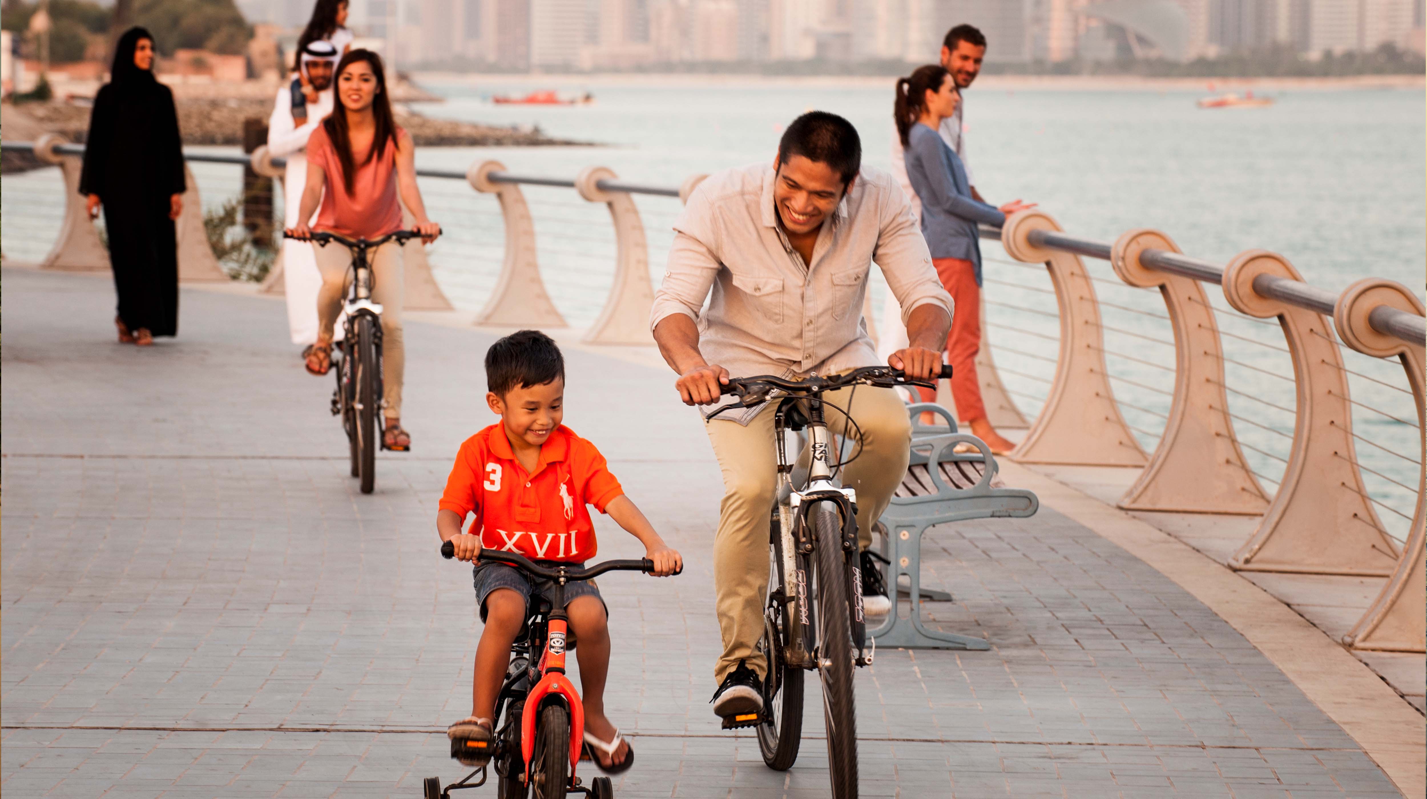 Una buena forma de moverte por el centro de Abu Dhabi es recorrerlo a pie para ver mejor los increíbles edificios. Muchos de los lugares de interés del centro de Abu Dhabi son accesibles a pie, sobre todo en la zona de Corniche, con sus 8 km de pasarelas y playas.