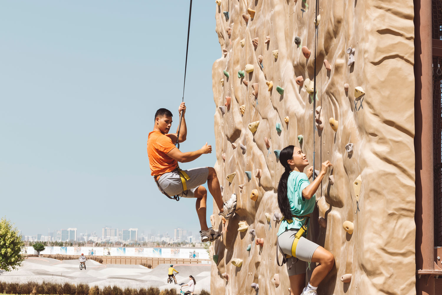 Divertitevi allenandovi in uno dei centri sportivi all’aperto di Abu Dhabi! Scoprite località di alto livello come Hudayriat Island, dove vi attendono piste ciclabili, pareti da arrampicata e molto altro.
